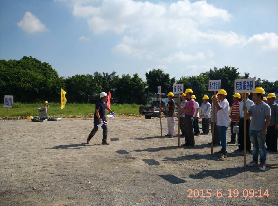 6月19日上午9點,由佛山市三水區(qū)水利投資建設(shè)有限公司、佛山市三水區(qū)國土城建和水務(wù)局主辦,廣東金松建設(shè)工程有限公司及其他多家施工企業(yè)共同參與的建筑施工現(xiàn)場安全生產(chǎn)事故應(yīng)急綜合演練在三水區(qū)樂平涌中段工地舉行。演練項目分為消防應(yīng)急救援、觸電應(yīng)急救援、深基坑塌方應(yīng)急救援、食物中毒應(yīng)急救援、火災(zāi)事故。在演練過程中,工地現(xiàn)場發(fā)生模擬事故后,立即啟動事故應(yīng)急預(yù)案,自行迅速組織現(xiàn)場救援,按既定計劃有序開展救援活動。整個演練過程組織有序、開展得力,演練取得了圓滿成功。