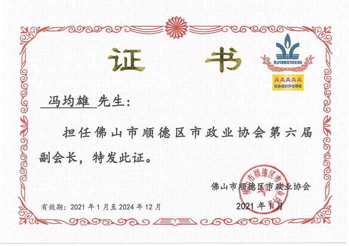 佛山市順德區市政業協會第六屆副會長榮譽